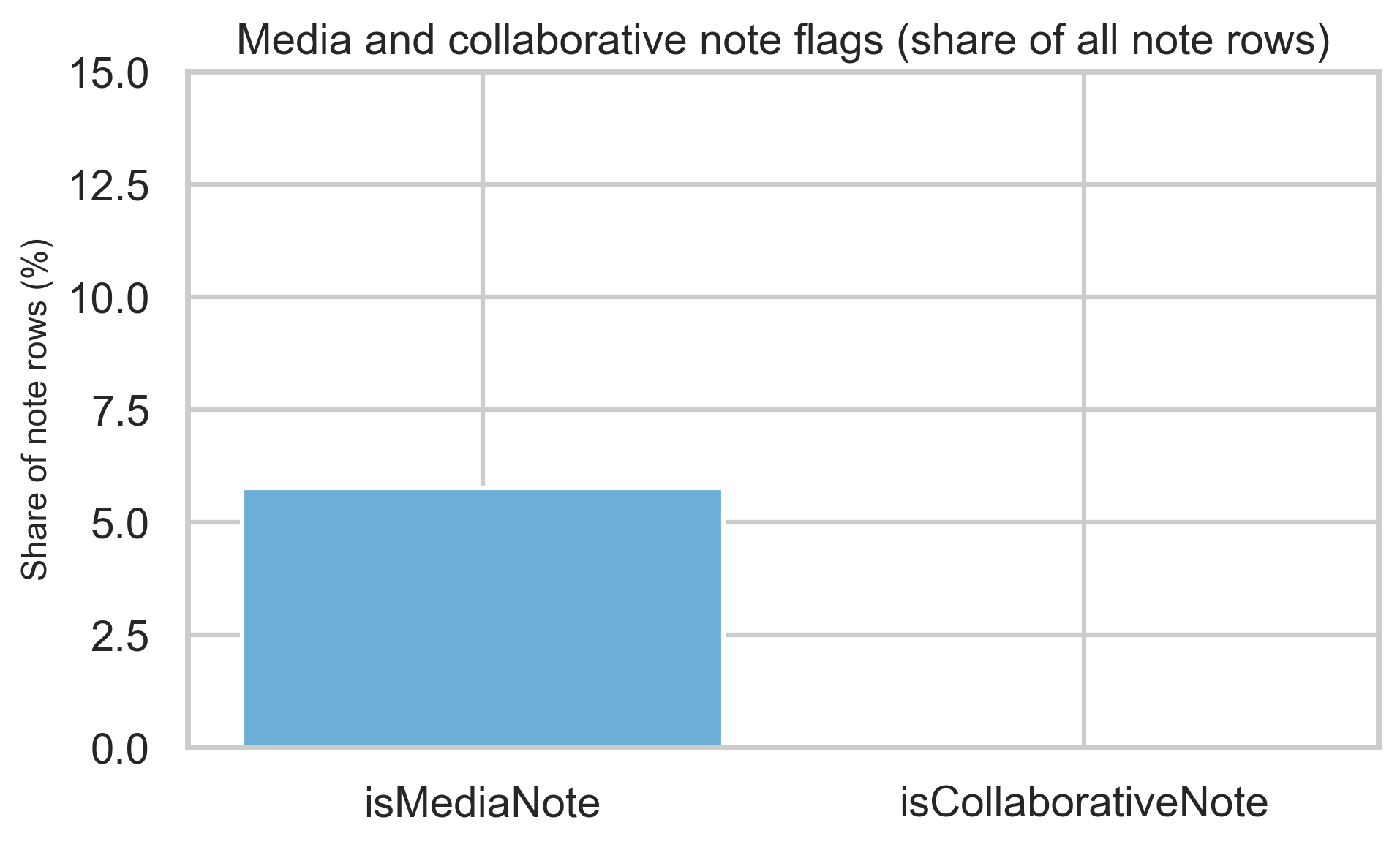 Media and collaborative flags are a minority share of rows but materially nonzero—useful context when interpreting note mix.