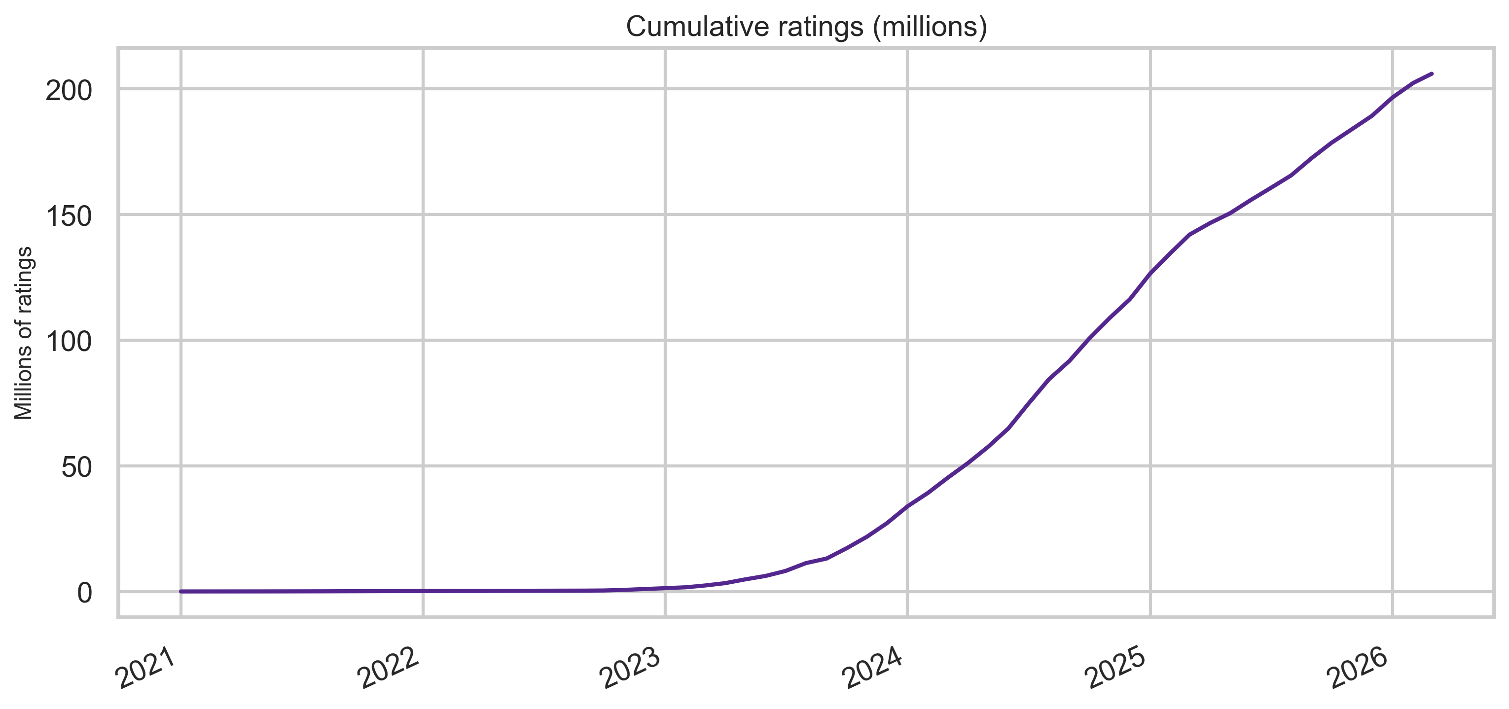 Time span (epoch milliseconds in source data): notes run from 2021-01-28 through 2026-03-17; ratings from 2021-01-23 through 2026-03-18 (UTC, from export min/max timestamps). These are snapshot bounds, not a claim about program start dates elsewhere.